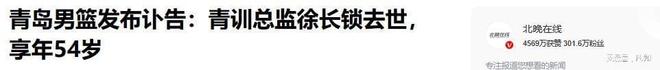 前山东男篮主教练、青岛男篮青训总监徐长锁因病逝世,年仅52岁,这位曾发掘并培养NBA新星杨瀚森的功勋教练,战胜了一切却最终没能战胜病魔。