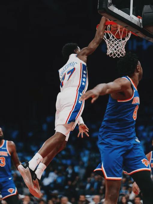 天赋!76人官方晒埃奇库姆比赛炸裂扣篮瞬间