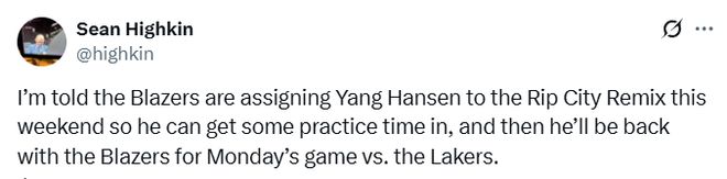 开拓者队记透露,开拓者此举是为了让杨瀚森收获更多的训练时间,并且他将在周一与湖人的比赛中重回球队。若之后杨瀚森在开拓者的出场时间有限,那么他本赛季将在两支球队之间频繁往返。