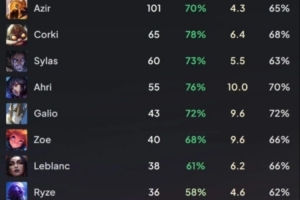 Chovy英雄使用情况:沙皇101场70%胜率,飞机65场78%胜率