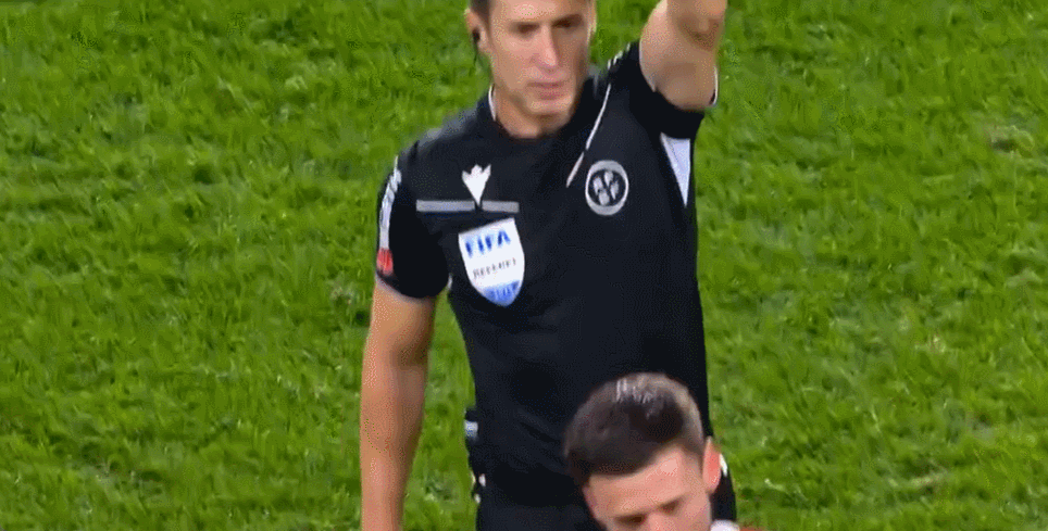 马竞塞尔塔第8分钟,记分牌标记马竞染红,第40分钟朗格莱被罚下