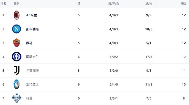 意甲第6轮进行了多场比赛。拉齐奥创造了奇迹,在主场完成极限绝平。拉齐奥此役面对的是都灵。小西蒙尼早早就帮助都灵取得领先。之后坎切列里连进2球,让拉齐奥反超比分。但是,切-亚当斯的进球让双方再次回到同一起跑线。第93分钟,萨乌尔-科科头球顶进。都灵反超比分了!本以为比赛会就此结束。没想到在第103分钟,卡塔尔迪点射破门,完成绝平,拯救了拉齐奥。最终的比分定格为3-3!这场比赛真是太神奇了,补时出现两粒进球。 亚特兰大在主场和科莫踢成1-1平手。这场比赛的进球出现得很早。萨马尔季奇在开场6分钟就取得进球,帮助亚特兰大取得领先。不过,佩罗内在第19分钟就扳平了比分。此后双方都有不少机会,但都无法转化为进球。这场比赛战平,意味着亚特兰大连续6场联赛保持不败,不过,平局有点多,有4场都是平局。 国际米兰在主场大获全胜,踢爆了克雷莫内塞。这场比赛国际米兰的进球来得很早,在第6分钟就取得了领先,进球的是劳塔罗。随后,博尼头球破门扩大比分。下半场国际米兰再接再厉,博尼接连送出助攻,迪马尔科和巴雷拉相继进球!博尼踢得太好了,制造了4球,包括1进球3助攻。最后时刻博纳佐利扳回一球,但也无济于事。最终的比分定格为4-1,国际米兰击败克雷莫内塞。 在积分榜上,榜首易主,国际米兰以12分登上了榜首位置。还有3支球队也是12分,但净胜球不如国际米兰。AC米兰、那不勒斯和罗马排名第2到第4,这些球队都比国际米兰少踢1轮。尤文图斯以11分排名第5。亚特兰大只拿到10个积分,排名第6。科莫、萨索洛和克雷莫内塞都是9个积分。而拉齐奥只拿到7分,排名第10。 |