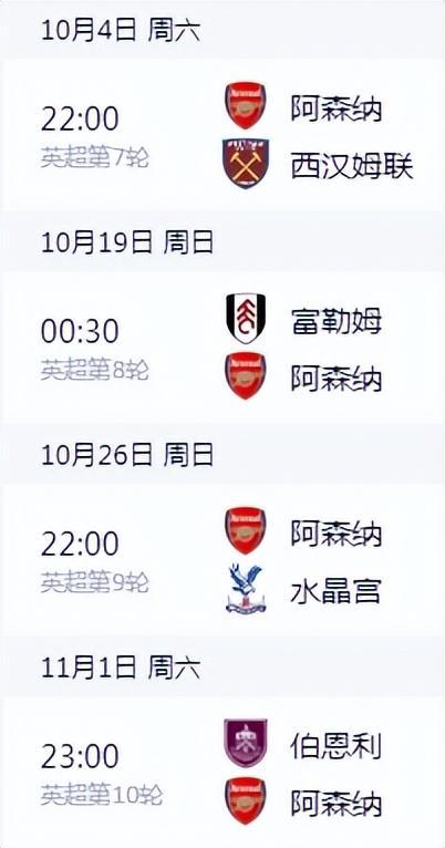 阿森纳即将进入甜蜜赛程,迎来冲击积分榜首绝佳时机