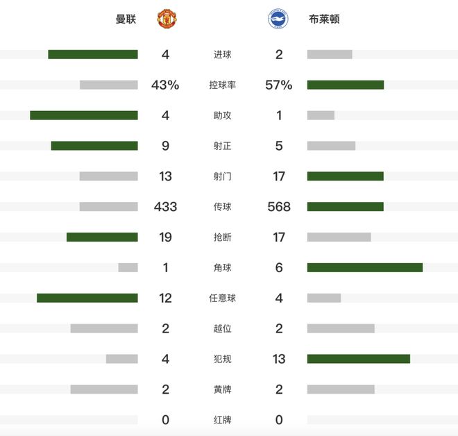 英超:曼联42布莱顿3连胜!库尼亚首球姆伯莫双响,胖虎传射建功